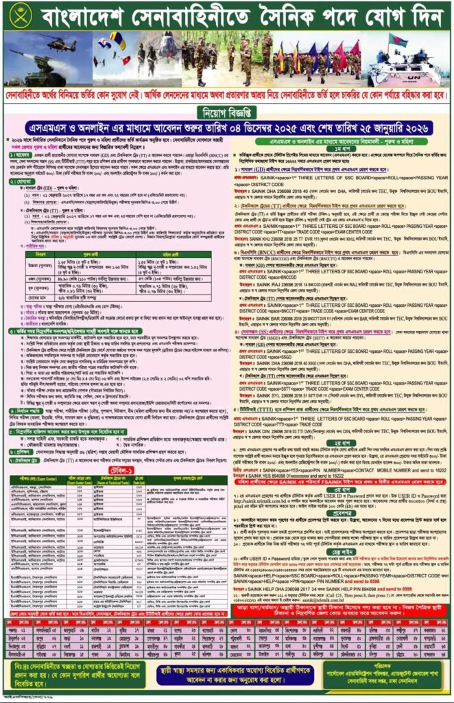 সৈনিক নিয়োগ বিজ্ঞপ্তি ২০২৬