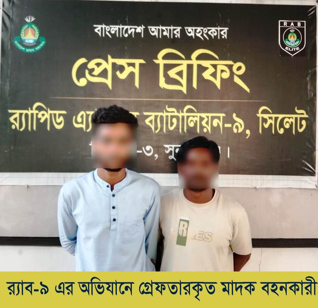 এরই ধারাবাহিকতায় র্যাব-৯, সিপিসি-৩, সুনামগঞ্জের একটি আভিযানিক দল সুনামগঞ্জ জেলার সদর মডেল থানাধীন ওয়েজখালী বাজার এলাকায় অবস্থানকালে অদ্য ০৩/০৪/২০২৬ খ্রি. তারিখ আনুমানিক বিকাল ৩.২৫ ঘটিকার সময় গোপন সূত্রে জানতে পারে যে, সুনামগঞ্জ জেলার সদর মডেল থানাধীন মল্লিকপুর নতুন বাসষ্ট্যান্ডে FAHAD & MAYSHA NEW SOUDIA নামক যাত্রীবাহী বাসে কতিপয় মাদক ব্যবসায়ী মাদকদ্রব্যসহ যাত্রীবেশে অবস্থান করছে। উক্ত সংবাদ পেয়ে র্যাবের আভিযানিক দলটি আনুমানিক বিকাল ৩.৩৫ সময় ঘটনাস্থলে পৌঁছালে র্যাবের উপস্থিতি টের পেয়ে ০২ জন ব্যক্তি যাত্রীবাহী বাস থেকে নেমে পালানোর চেষ্টাকালে তাদেরকে আটক করা হয়। আটককৃত ব্যক্তিদ্বয়কে ব্যাপকভাবে জিজ্ঞাসাবাদ করলে তারা জানায় যে, তাদের হেফাজতে মাদকদ্রব্য ইয়াবা রয়েছে। পরবর্তীতে তাদের দেহ তল্লাশী করে তাদের পরিহিত প্যান্টের পকেট থেকে কালো রংয়ের বায়ুরোধক ০৩টি প্যাকেট থেকে ৫১৫ পিস ইয়াবাসহ তাদেরকে গ্রেফতার করা হয়। গ্রেফতারকৃত ব্যক্তিদ্বয়- ১। মোঃ আরজু আলম (৩৪), পিতা- মৃত মনির উদ্দিন এবং ০২। আলী আজাদ (২২), পিতা- আলী নেওয়াজ, উভয় সাং- বেতাল আলীপুর, থানা- জামালগঞ্জ, জেলা-সুনামগঞ্জ