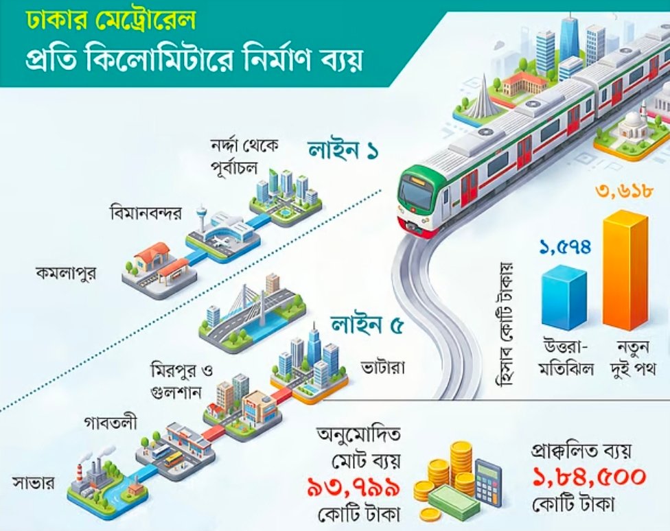 নতুন দুই মেট্রোরেলের ব্যয় আগের চেয়ে দ্বিগুণের বেশি