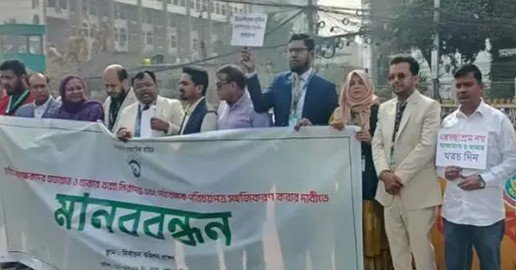 ইসির সামনে মানববন্ধন: ভাতা-নিরাপত্তার দাবি পর্যবেক্ষকদের