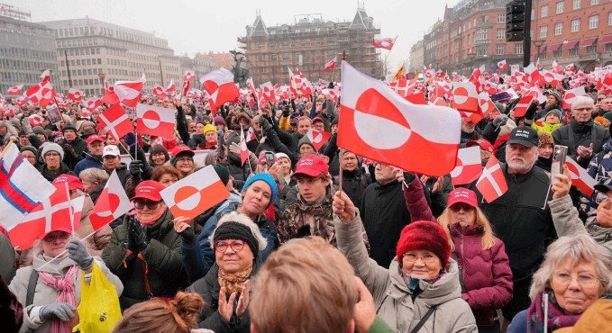 ডেনমার্ক ও গ্রিনল্যান্ডে ট্রাম্পের প্রশাসনের নীতির প্রতিবাদে মানুষ রাস্তায় নেমেছে।